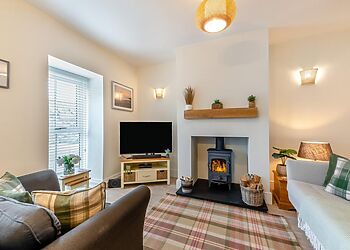 - Wood burner and leather sofas
